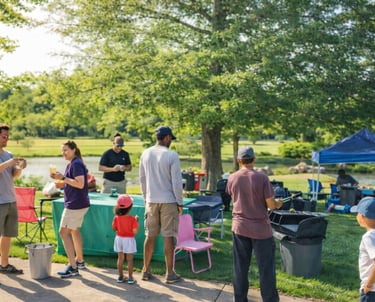 Food Truck on site will provide Beef hot dogs, Beef Hamburgers, Fish, Fries, water.